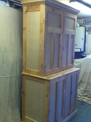 These are pics he has sent, cannot wait to see it in situ in the kitchen, then to decide on finish, think antique wood stain and then several coats of wax.