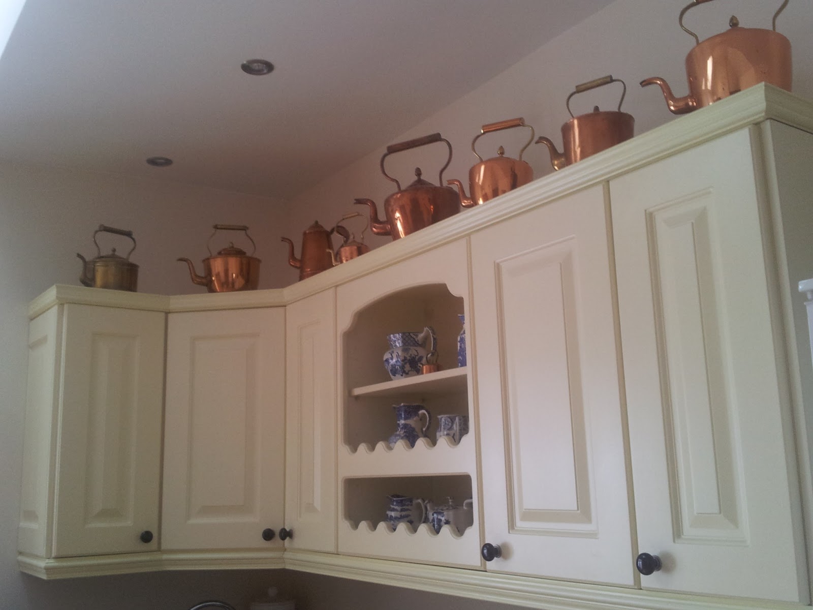We have now unpacked the copper kettle collection that we have accumulated over several years...some of them being family "heirlooms".